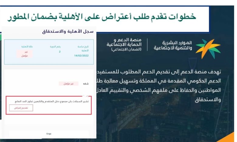 أوضحت وزارة الموارد البشرية والتنمية الاجتماعية طريقة الاعتراض على أهلية الضمان الاجتماعي المطور . يقوم الأفراد من مستحقي الدعم والأسر…